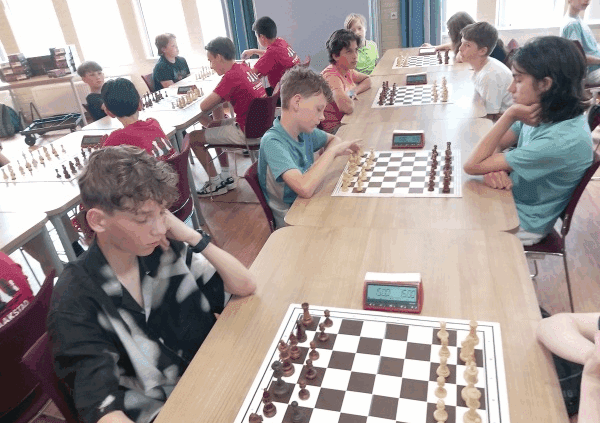 De 1e ronde was echter een meevaller. Tegen het Nijmeegse UVS (toch wel een ontzagwekkende naam in zowel het volwassenen- als het jeugdschaak) wonnen we soepeltjes met 3-1. Mooi was de overwinning van Kjeld die een toren voor kwam en daarna grote opruiming hield bij de pionnen van de tegenstander: een teamleider ziet dit graag!