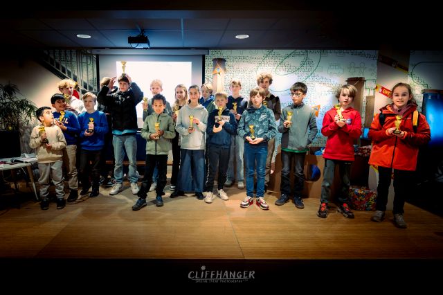 In groep E speelden twee meisjes de eerste viool: Stella Braam werd 1e (6.5 uit 7), voor Sterre Blasco Manzanero (6 uit 7). Derde werd Manu van Biljouw. De Zutphenezen Ruben Bos en Jaxon Jansen speelden een goed toernooi en eindigden in de middenmoot (voor mijn gevoel hadden ze meer verdiend, maar ja…).