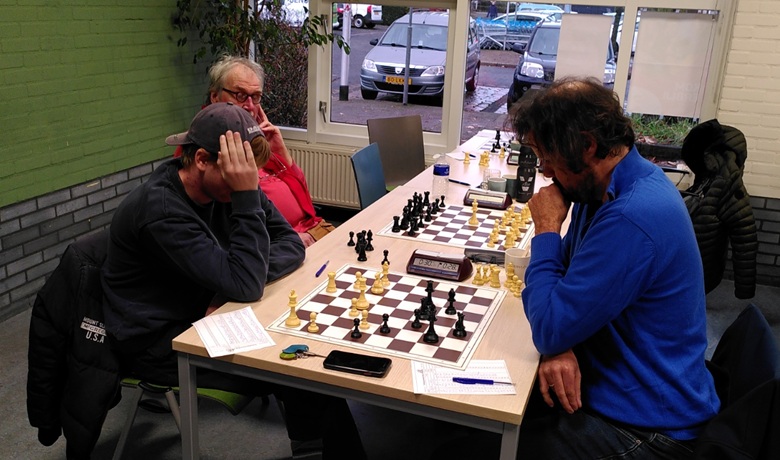 In de tweede KNSB wedstrijd kwam het tweede team van Veenendaal op bezoek. Ik kreeg de groeten van Nico Bosman (de Paul Ham van Veenendaal) oud clubgenoot van LSG in de jaren 80. Het beloofde een spannende match te worden, met een gemiddelde rating van beide teams van ongeveer 1880.